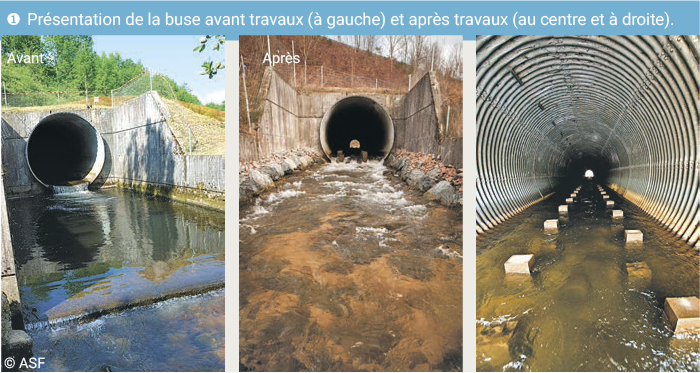 Évaluation du franchissement de la buse aménagée